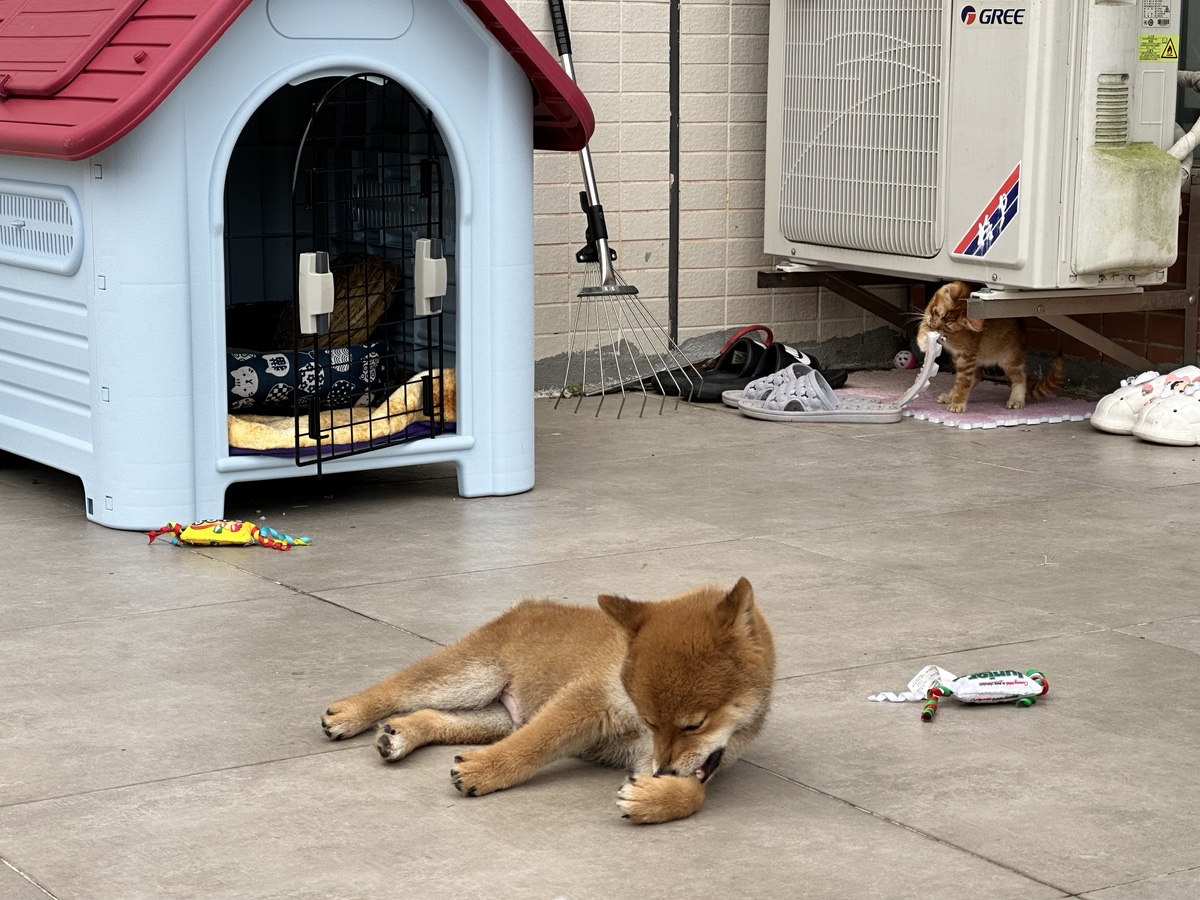 品种是柴犬,购买自罗湖的宠物市场,当时和他一起来的时候还有一只猫,名字叫马卡,前几个月马卡狠心的离家出走了,至今也没有回来😭